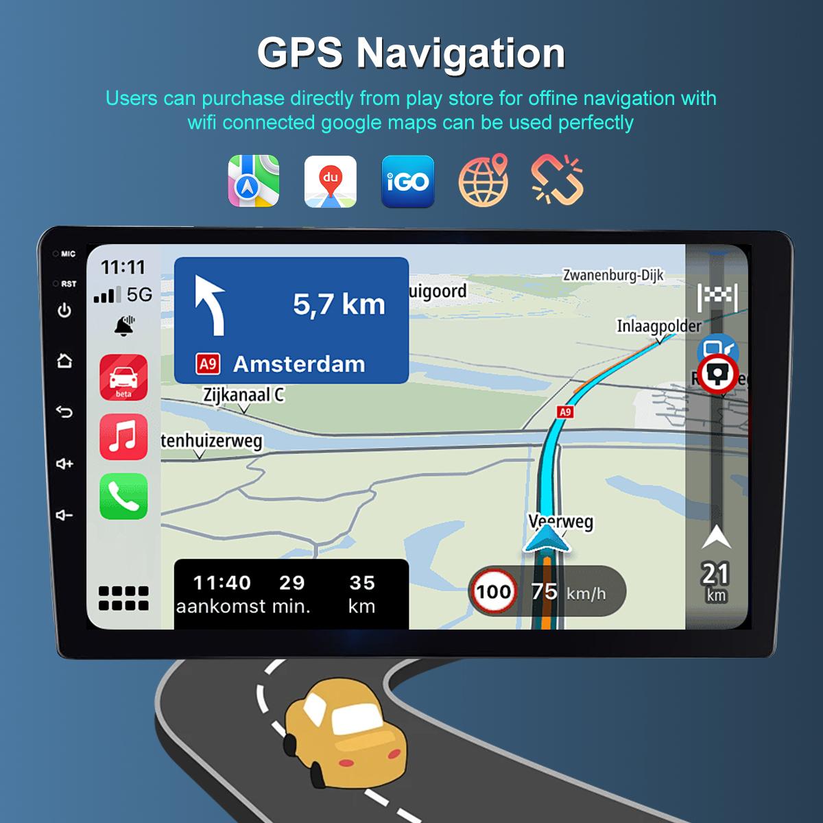 Offline and online navigation available. Google Maps ready with WiFi connection, plus easy app downloads for Android users.