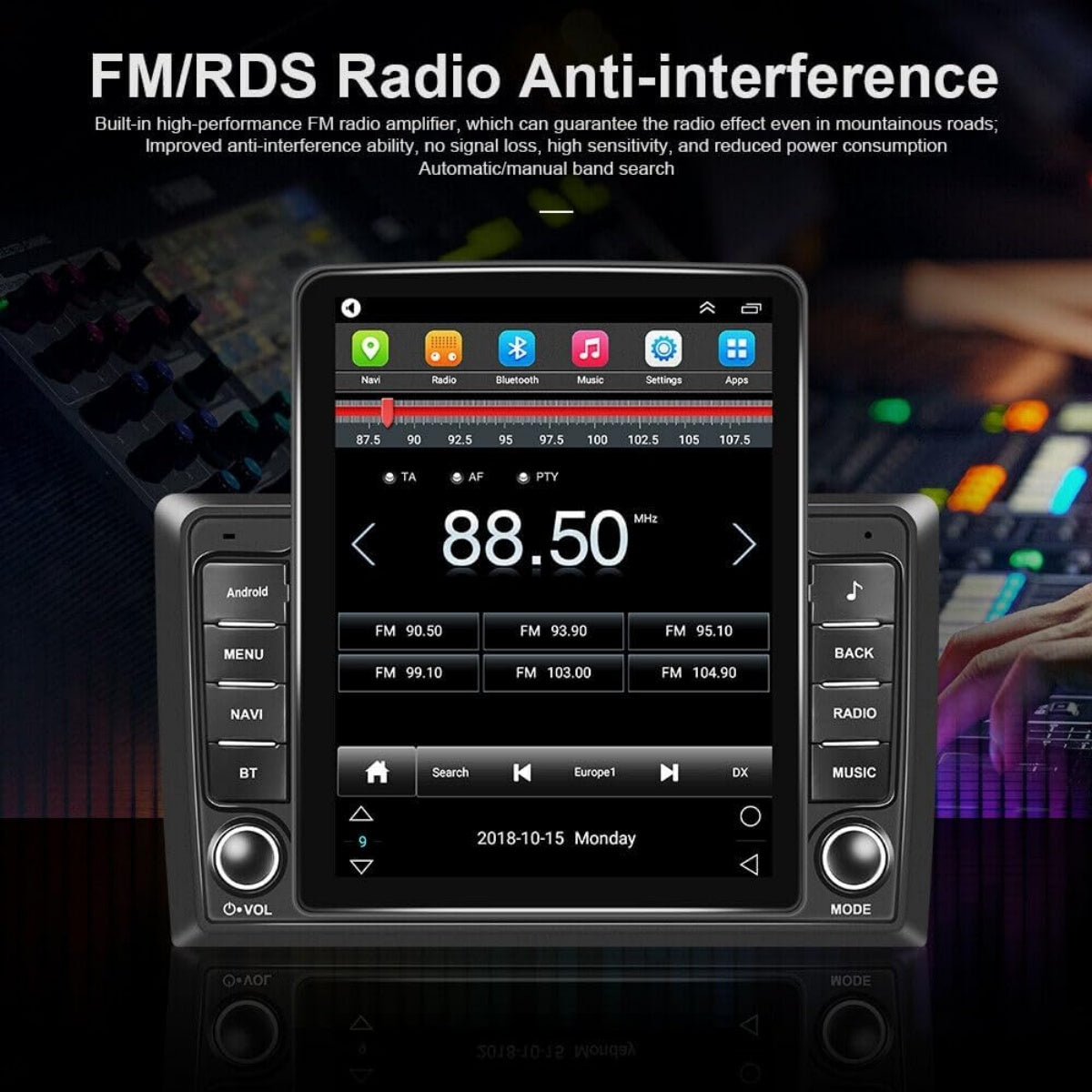 Sync contacts, answer calls safely, and stream music wirelessly via Bluetooth. Tune in to FM radio for news, traffic, sports, and entertainment on the go.