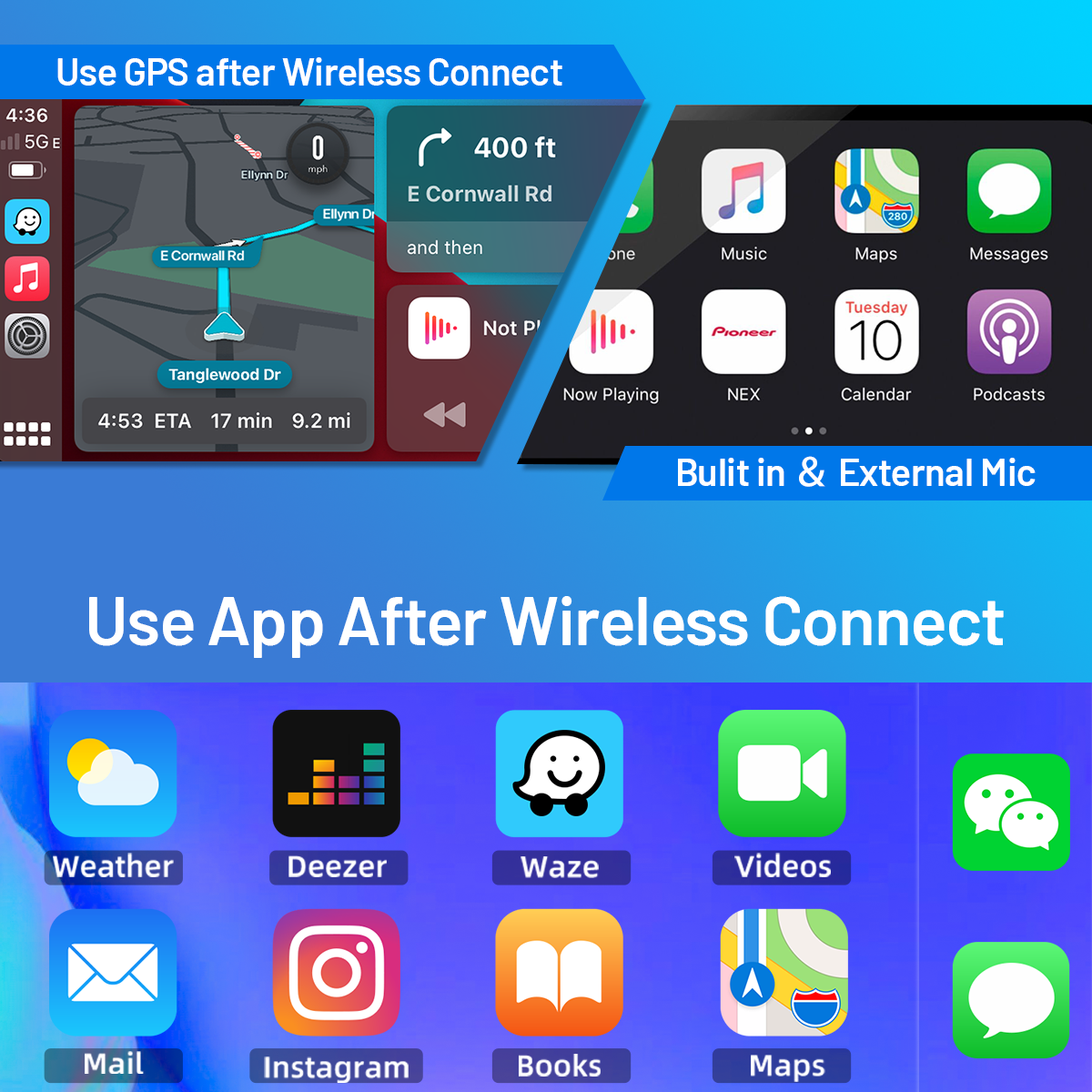 ✅🚗【Built-in Wireless Carplay and Android Auto】This Cocheparts car stereo comes with built-in Apple Carplay and Android Auto, making it easy to integrate your smartphone with Wireless or Wired Carplay and Android Auto features, allowing you to make calls, play music access map navigation, voice control, and more for a completely hands-free, safe drive.