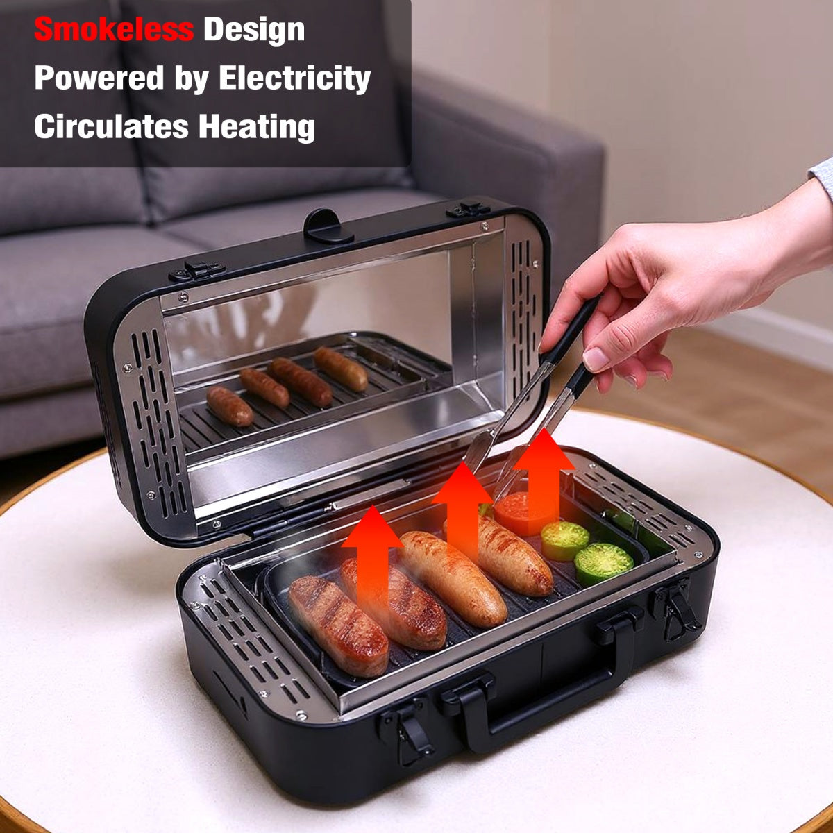 [Smokeless Outdoor Electric Grill]: Smoke-free design lets you grill indoors or outdoors without lingering odors—perfect for camping, picnics, or balcony BBQs.