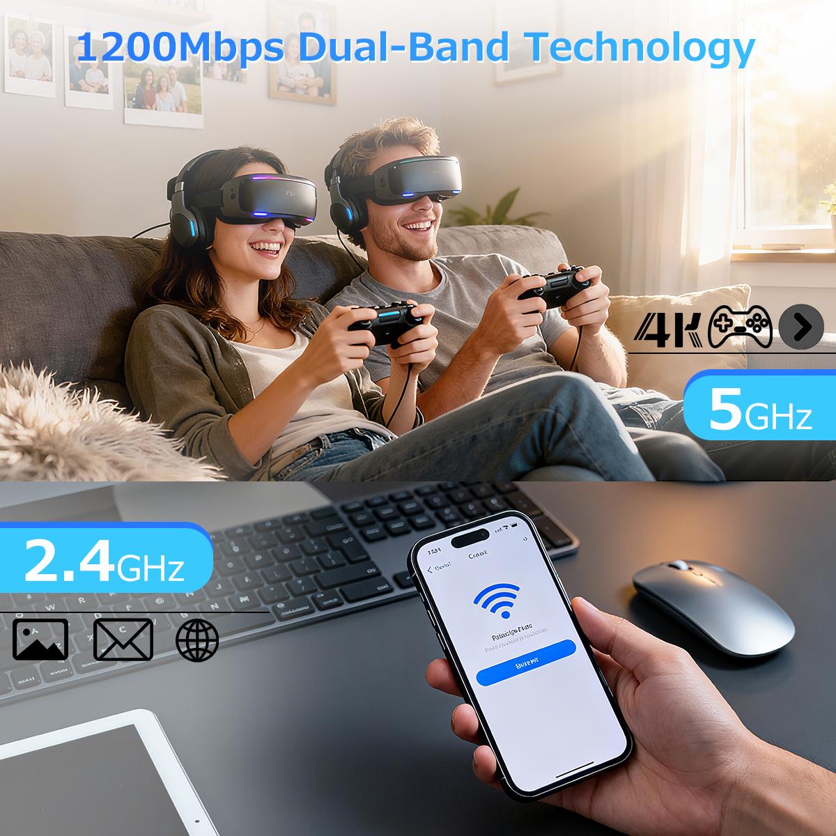 Enjoy lightning-fast WiFi with 867Mbps on 5GHz and 300Mbps on 2.4GHz bands. Ideal for HD streaming, gaming, video calls, and smart devices without lag or interruptions.
