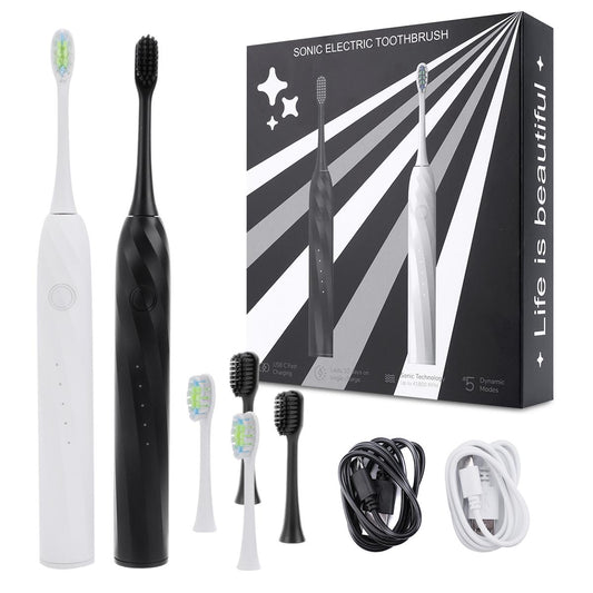CarpartsX 2 Counts Electric Toothbrush Set, USB-C Rechargeable, 5 Modes, 30-Day Battery, 40,000 VPM, 4 Brush Heads(Black & White) Ideal for Home & Gift