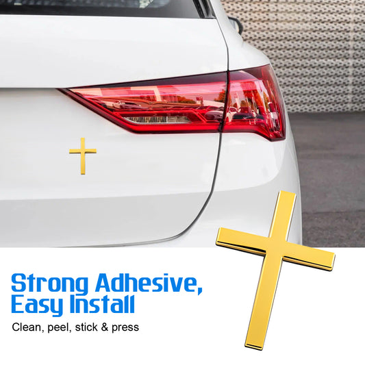 2PCS 3D Metal Jesus Cross Car Stickers – 2.5"x1.8" Alloy Emblem Decals, Self-Adhesive Scratch Cover for Car Body, Silver & Gold