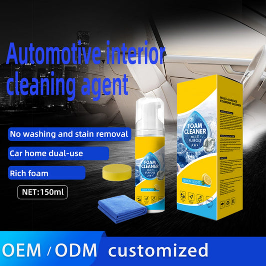 Car Interior Foam Cleaner Kit 150ML with Sponge & Wipe – All-Purpose Cleaning & Polishing Spray for Leather Seats, Dashboard, and Windows