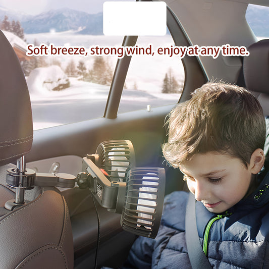 CarpartsX Adjustable Car Backseat Fan, 1 Count Summer Essential Double-head Electric Fan with Seat Clip, Car Interior Diffusers, Strong Wind Rear Seat 360 Degrees Rotation Large Air Volume Fan, Men Gifts, USB Car Fan, Car Ventilation Tools