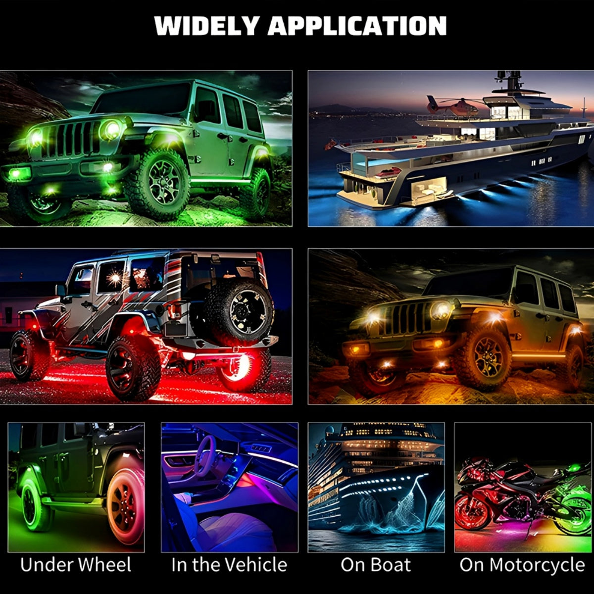 4PCS RGB LED Rock Lights Kit – Multicolor Underglow Lighting with APP Bluetooth Control, Music Sync & Waterproof Design for Cars, Trucks, ATV, UTV, SUV, Boat